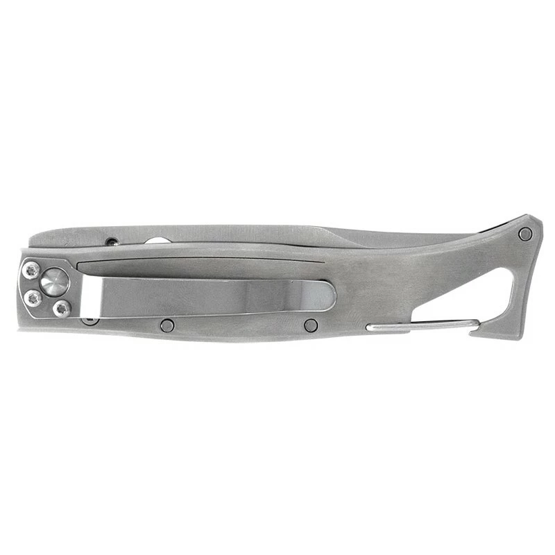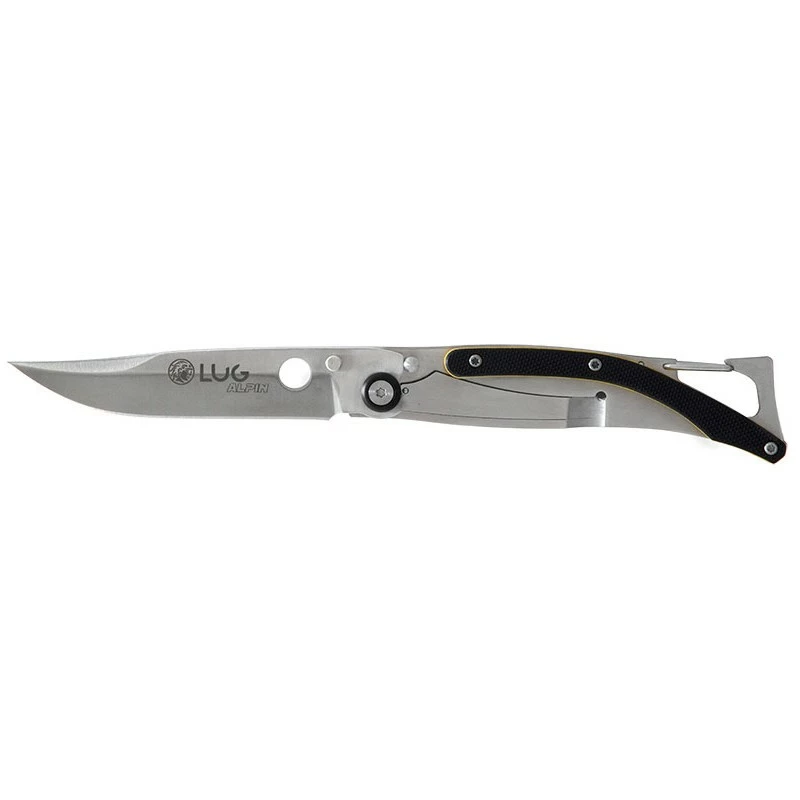 Le LUG Alpin SP1SJN possède un manche façon squelette construit en acier inoxydable gris pour la résistance à la corrosion, enrichi d’une zone courbée en G10 noir et liseré jaune. Une association astucieuse de couleurs qui fonctionne à merveille en raison du joli contraste : cela ne manquera pas d’attirer l’œil ! La poignée fait en sorte que le couteau soit simple à transporter au quotidien, déjà elle ne mesure que 11cm de long et intègre un mousqueton, clip de poche.