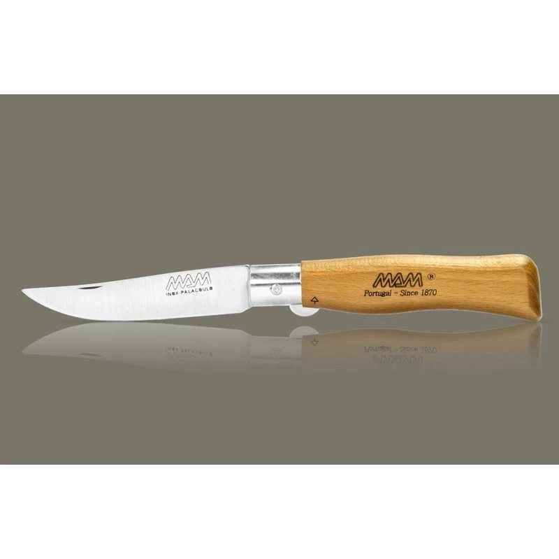 LĂ©ger, ce couteau MAM 2007 ne pèse que 49 grammes. Pourtant, il est rĂ©sistant de part son manche en bois hĂŞtre de 112mm de long qui est d’ailleurs dĂ©corĂ© avec goĂ»t par le texte « MAM Portugal since 1870« . AgrĂ©able Ă prendre en main, le manche est aussi très ergonomique, de quoi pouvoir manier le couteau MAM avec aisance au quotidien. Au niveau de la lame, elle est fabriquĂ©e en acier inoxydable et mesure 90mm de long. Elle est marquĂ©e par le logo du fabricant Portugais MAM, vous pouvez personnaliser le verso contre un supplĂ©ment financier.