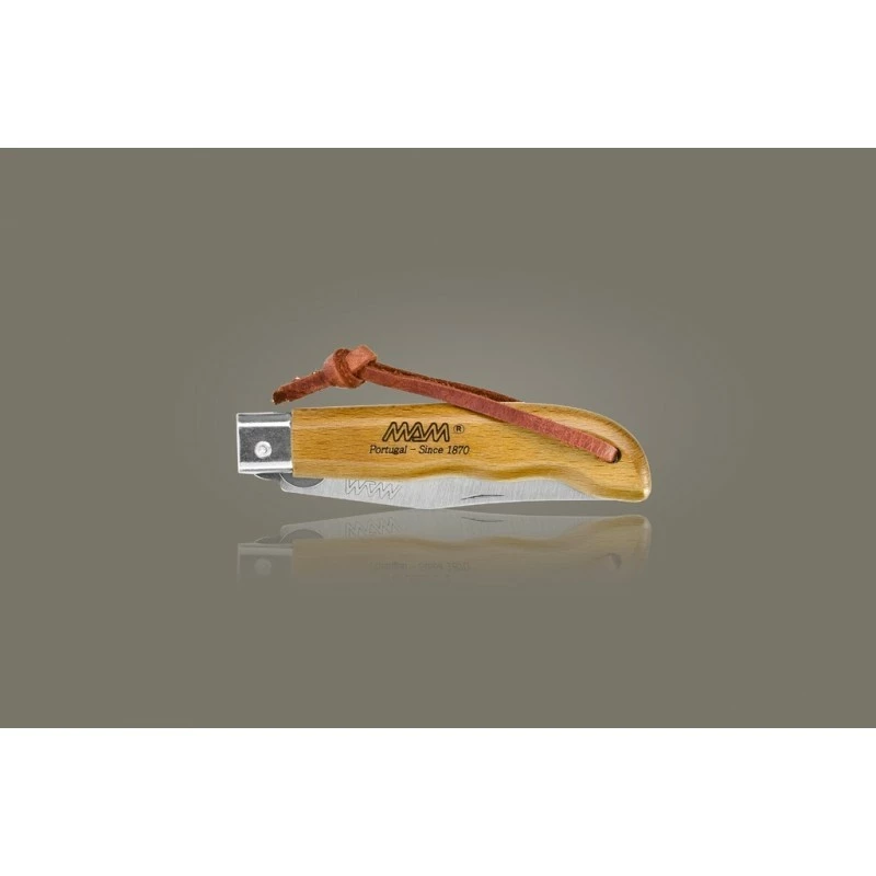 Fabriqué au Portugal, ce couteau de poche pliant MAM référence 2048 se dote d’une lame tranchante en acier inoxydable : elle mesure exactement 90mm de longueur. Avec elle, vous pourrez tout couper avec la plus grande aisance, elle est parfaite pour apporter du tranchant à vos sorties Outdoor. Au niveau du manche, il est conçu en bois hêtre et mesure 92mm de longueur, il est à peine plus long que la lame : il est décoré du texte « MAM Portugal since 1870« . Le manche intègre également un petit trou où est positionné un lacet : il permet de pouvoir accrocher le couteau MAM n’importe où, notamment à un sac à dos. De quoi partir à l’aventure en toute sérénité ! Un couteau de qualité avec un rapport qualité/prix imbattable !