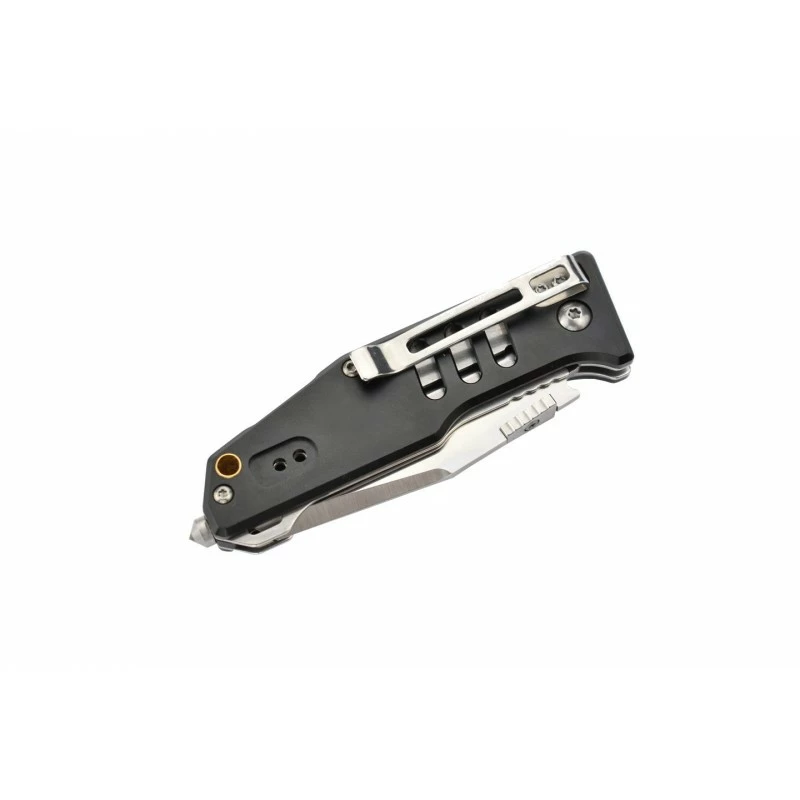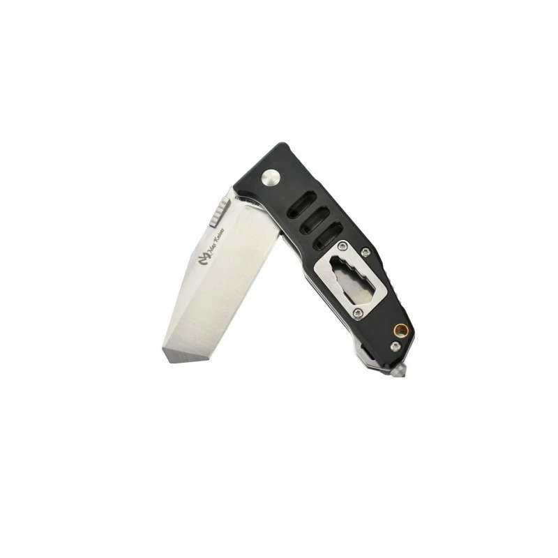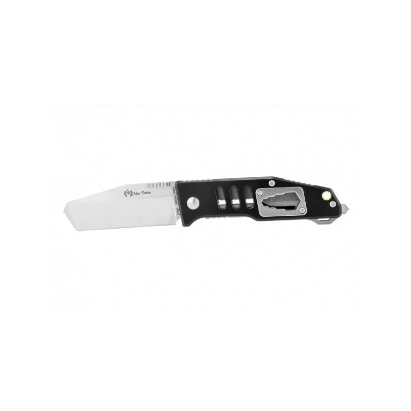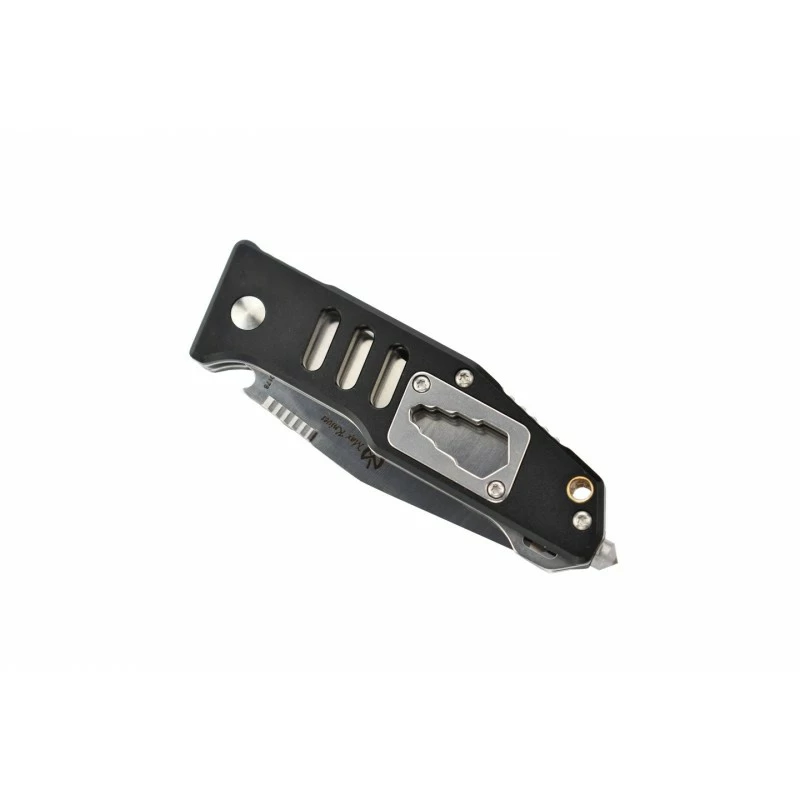Ce couteau multifonction MK115B, signé Max Knives, possède aussi un manche de couleur noire, en aluminium anodisé, dont la prise en main est particulièrement agréable, confortable. Qui plus est, la poignée fait aussi office de brise vitre pour l’urgence, de décapsuleur ainsi que de clé hexagonale 4 tailles, une multitude d’outils pour un couteau qui s’adapte à de nombreuses situations ! Le clip ceinture réversible au dos assure une aisance de port quotidienne, à chaque instant, de toute manière le manche ne mesure que 95mm de long.