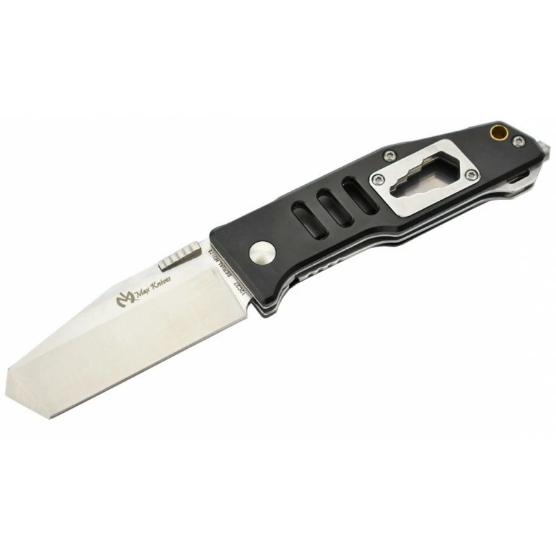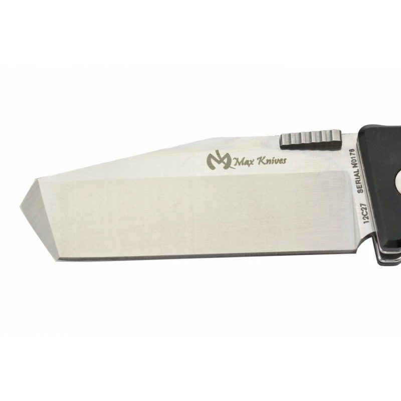 Ce couteau Max Knives, modèle MK115B, est un multifonction qui vous apportera toute la polyvalence dont vous avez besoin au quotidien. Il possède notamment une lame de forme tanto, mesurant 65mm de longueur, qui s’avère être fabriquée en acier inoxydable 12C27. Un excellent compromis entre tranchant et résistance ! On rappellera, comme d’habitude, que la lame tanto est marquée par le logo Max Knives, elle est aussi personnalisable par procédé gravure au niveau des deux faces.