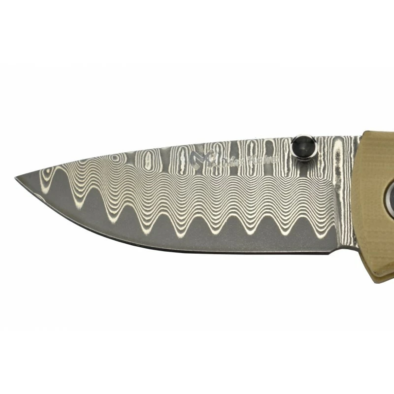 Le Max Knives MKBAM OTD est un petit couteau pliant au style remarquable, et aux performances excellentes. La première chose que l’on remarque, c’est sans doute sa petite lame de 5cm de long, en acier damas, avec double thumb stud pour une utilisation ambidextre, et un déploiement grandement facilité. On précisera que ce modèle MKBAM OTD bénéficie du très célèbre et utilisé système de verrouillage liner lock.