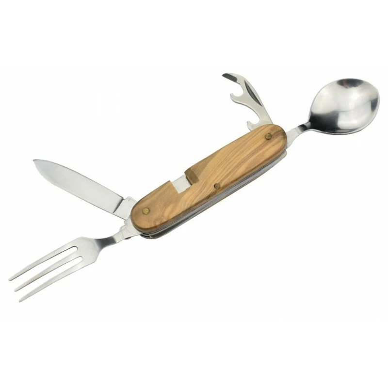 Marre de toujours oublier vos couverts à la maison lors des sorties pique-nique en famille ou en amoureux ? Alors optez pour le Max Knives modèle P04OL ! C’est un couteau spécialement adapté pour le pique-nique, ou pour manger, se restaurer, en extérieur, au beau milieu de la nature. Il faut dire qu’il intègre une lame en acier inoxydable 440C, une fourchette, une cuillère, un décapsuleur : tout le nécessaire pour manger et boire à votre guise ! On mentionnera tout de même le fait que les couverts pique-nique sont détachables, un détail qui peut avoir son importance. Le couteau pique-nique Max Knives P04OL est muni d’un manche de 88mm de long en bois olivier, un matériau noble qui plait au plus grand nombre, et qui est agréable à regarder, mais aussi à manier. Existe aussi en version manche corne de bélier.