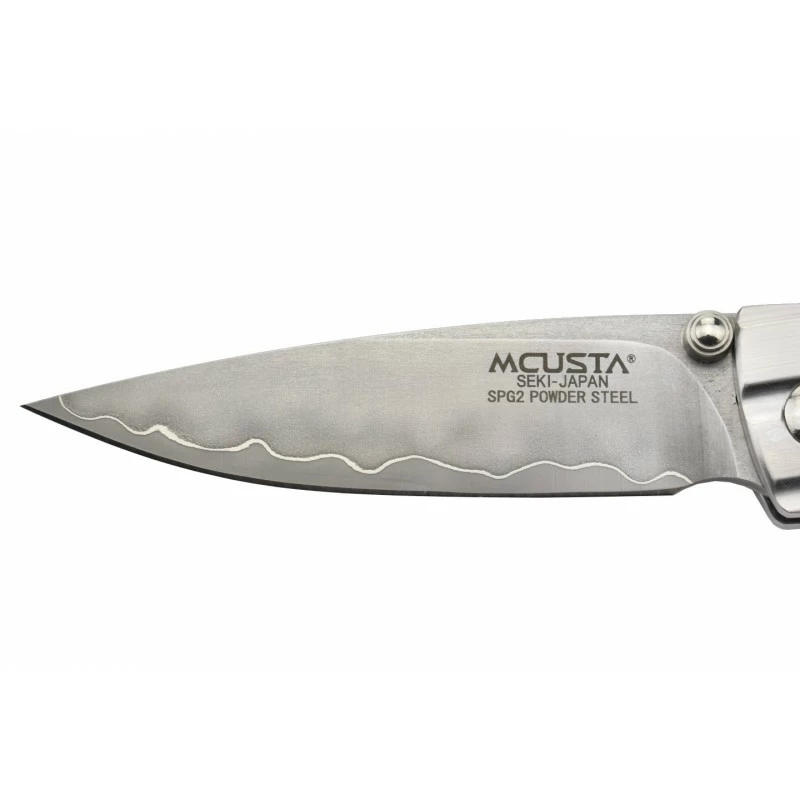 Le couteau de poche Mcusta MC-142G possède une lame de 71mm de longueur, conçue en acier SPG2, avec verrouillage liner lock, un système très utilisĂ© en coutellerie. La lame comporte un bouton thumb stud permettant de faciliter grandement son ouverture, on peut aussi observer le texte « Mcusta Seki Japan SPG2 Powder Steel« . N’oubliez pas que le couteau Mcusta MC-142G vous sera livrĂ© avec son Ă©tui en nylon/cuir, avec fermeture par bouton pression.