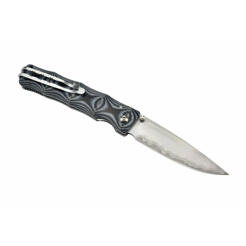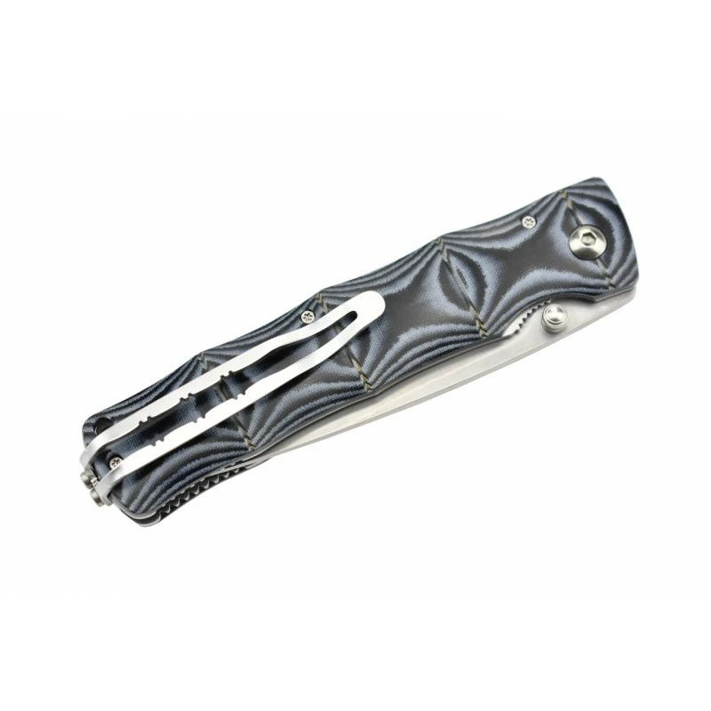 Le couteau pliant Mcusta MC-201G Minagi est muni d’un manche en micarta bleu, décoré avec goût, avec un rendu abstrait très attrayant : ça vaut le coup d’œil ! Extrêmement décorative, la poignée est également agréable à tenir en main, ainsi que transportable à souhait, grâce à son clip ceinture au dos, mais aussi sa longueur de 115mm en position fermée. Le Mcusta MC-201G Minagi est doté du mécanisme de verrouillage liner lock.