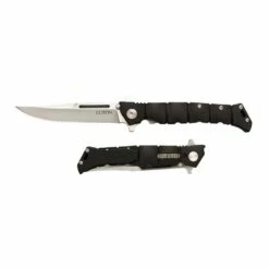 Le Medium Luzon est une excellente alternative pour celles et ceux qui ne sont pas en mesure de porter lĂ©galement un balisong. Fortement inspirĂ© par les couteaux papillons de Lynn C. Thompsons, ce couteau Cold Steel est le fruit d’une collaboration avec Mike Wallace. Il possède une lame de 102mm de longueur en acier inoxydable 8Cr13MoV, profil clip point, dont la duretĂ© HRC est d’environ 57-58. DotĂ©e d’une pointe en bout fortement prononcĂ©e, la lame est marquĂ©e par l’inscription Luzon ainsi que personnalisable par gravure. Le dĂ©ploiement de cette dernière est grandement facilitĂ©e grâce Ă la prĂ©sence d’un flipper. Le manche est de couleur noire, il est fabriquĂ© en GFN, Ă savoir du nylon renforcĂ© de verre. De ce fait, la poignĂ©e du Cold Steel Medium Luzon, rĂ©fĂ©rence CS20NQL, est impermĂ©able, et donc utilisable par tous les temps. Avec verrou de sĂ©curitĂ© fiable et performant, ainsi qu’un clip de poche rĂ©versible au dos qui se fond parfaitement dans le dĂ©cor. Le Luzon existe aussi en modèle Large.