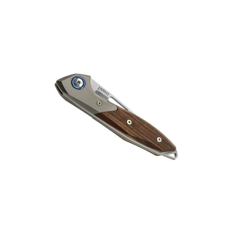 Un style à la fois moderne et authentique, voilà le pari fou réussi par Mercury lors de la conception de ce couteau MKM Cellina. Un résultat rendu possible en raison du manche fabriqué en bois de santos, avec mitre en titanium 6AL4V, et bien sûr l’incontournable pivot en titanium anodisé bleu en guise de décor stylé. Et le plus incroyable dans tout cela, c’est que le manche conserve une forme ergonomique offrant une prise en main très confortable en toutes circonstances. Le style oui, mais jamais au détriment de l’ergonomie ! Le couteau MKM Cellina Mercury MY02ST est un couteau EDC, qui par définition, se transporte aisément grâce au manche de longueur 10cm en position fermée ainsi qu’au trou pour lanière en bout. Pour protéger votre couteau durant les déplacements/mouvements, vous pourrez également compter sur une pochette en cuir noir MKM, avec boucle de ceinture et fermeture magnétique.