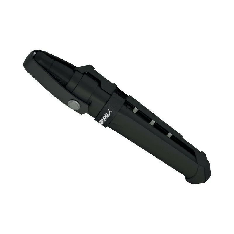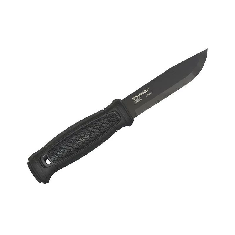 Le Mora Garberg Black Carbon (référence 13147) est un poignard robuste doté d’une lame noire pleine soie en acier carbone (longueur 11cm). Elle permet par exemple d’allumer un feu avec du silex ou bien un allume-feu (épaisseur de la lame 3,2mm). Une lame noire à bout pointu de très haute qualité : elle est entre autre marquée par le logo Morakniv en blanc (coutellerie Suédoise). Le couteau Mora Garberg Multi-Mount 13147 se révèle parfait pour la survie en pleine nature ou encore le bushcraft. Si ce poignard a tant de succès, c’est aussi grâce à son manche noir en gomme avec insert en nylon noir : il procure une prise en main des plus confortables. Mais ce n’est pas tout, ce modèle est aussi livré avec un étui tactique Multi-Mount compatible M.O.L.L.E. Un étui de protection élégant qui facilite grandement le transport du poignard au quotidien.