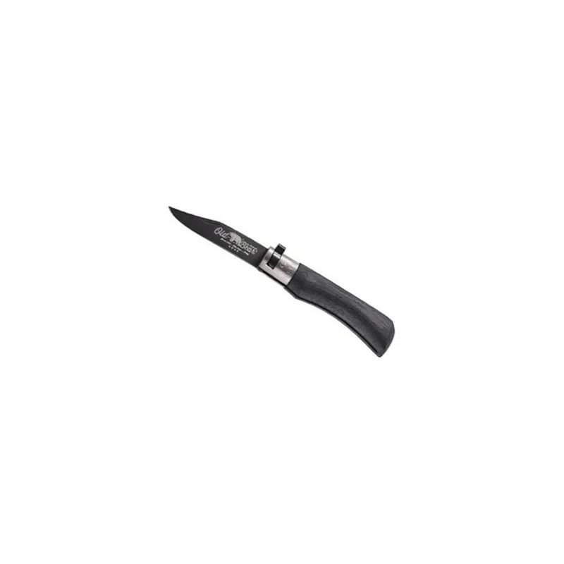 Le plus petit de tous les couteaux Old Bear avec une taille XS ! Il s’agit ici du modèle Total Black 312.XS avec lame noire en acier 420, revĂŞtement PTFE, avec virole de sĂ©curitĂ© grise en laiton nickelĂ©. En plus de sĂ©curiser les manipulations du couteau, la virole grise apporte Ă©galement de l’Ă©lĂ©gance avec une parfaite complĂ©mentaritĂ© avec la couleur noire globale. Conçu et fabriquĂ© de façon artisanale, ce couteau Old Bear Total Black virole grise XS est dotĂ© d’un manche en bois d’ayous stratifiĂ© noir, avec une longueur de seulement 9cm pour la facilitĂ© de transport. Un couteau qu’il sera très facile d’emporter n’importe oĂą en le glissant par exemple dans la poche ! Modèle livrĂ© en boĂ®te individuelle, avec certificat de contrĂ´le qualitĂ©. Existe aussi en version plus grande.