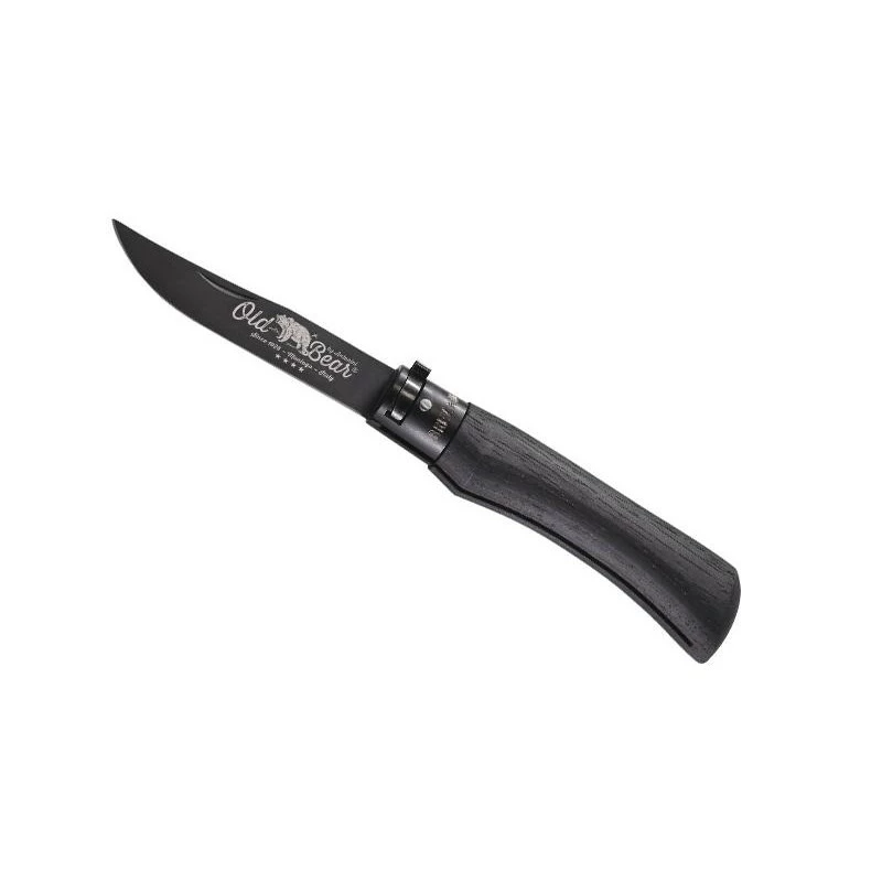 Ce couteau Old Bear Total Black taille M (311.M) est exactement le mĂŞme que le modèle 311.L, Ă une diffĂ©rence près. Le manche noir est toujours fabriquĂ© en bois d’ayous stratifiĂ©, mais il est lĂ©gèrement plus petit avec une longueur de 11cm. De ce fait, il se transporte donc logiquement avec encore plus de facilitĂ© ! La lame est elle aussi lĂ©gèrement plus petite, elle reste nĂ©anmoins toujours fabriquĂ©e en acier inox 420 avec revĂŞtement PTFE noir. Une lame Ă bout pointu tranchante qui est marquĂ©e par l’incontournable ours symbolisant la coutellerie artisanale Italienne Old Bear. PossibilitĂ© de graver le verso de la lame (texte de votre choix). Sur ce modèle, la virole de sĂ©curitĂ© est conçue en aluminium anodisĂ© noir, elle sert Ă verrouiller la lame en position ouverte ou fermĂ©e (sĂ©curitĂ© en utilisation et en transport). Le couteau pliant Old Bear Total Black taille M virole noire est fabriquĂ© de façon artisanale, il est livrĂ© en boĂ®te individuelle avec certificat de contrĂ´le qualitĂ©.