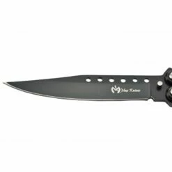 Ce modèle 02176 de chez Martinez Albainox est un couteau papillon à l’apparence à la fois élégante et originale. Il s’agit du balisong Phyton noir, qui est sublimé par un magnifique décor camouflage coloris grisâtre, avec des nuances plus ou moins claires ou sombres selon l’endroit. Cela permet de créer un design très contrasté, et de ce fait très harmonieux, qui ne manquera pas d’attirer le regard.