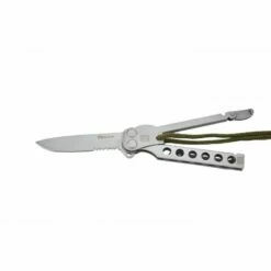 Ce couteau papillon Max Knives DS3 gamme Alain DESCY est muni d’une lame de longueur 92mm au tranchant lisse et dentĂ©, elle est fabriquĂ©e en acier inoxydable 440C, un acier très prisĂ© par la marque Max Knives. NumĂ©rotĂ©, ce couteau balisong est dotĂ© d’un manche en deux parties conçu en acier inoxydable, rĂ©sistant, il procure une prise en main tout simplement excellente. On remarque Ă©galement qu’une partie du manche est ajourĂ©e de 6 trous identiques pour toujours plus d’Ă©lĂ©gance. D’une longueur totale de 202mm, le couteau papillon Max Knives DS3 est très facile Ă transporter au quotidien : il se glisse aisĂ©ment dans une petite poche. Mieux encore, il est livrĂ© avec son clip ceinture et paracorde, de quoi pouvoir l’attacher et le transporter avec beaucoup d’aisance. Parfait pour offrir en cadeau, ce balisong Max Knives DS3 se personnalise au niveau de la lame (gravure).