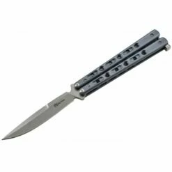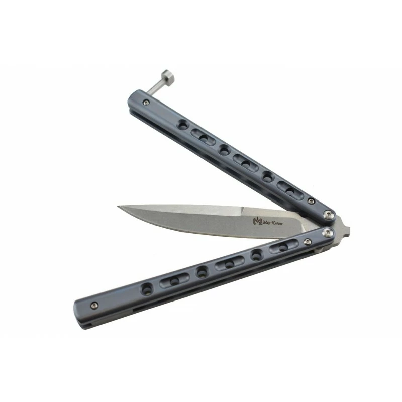 Le P40 OX est un couteau papillon haut de gamme issu de la marque Max Knives. Sa principale caractéristique est son manche en titane anodisé, un matériau onéreux qui dispose d’excellentes propriétés telles que la résistance à la déformation ou encore à la corrosion. De plus, cette poignée en titane anodisé est attrayante visuellement parlant par ses divers motifs ajourés. Se séparant en deux parties rigoureusement identiques, elle mesure 15cm de longueur et se loge facilement dans une pochette à zip fournie en plus du couteau papillon.