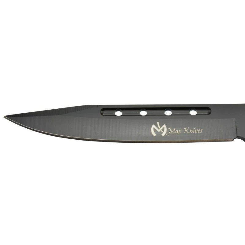 Si le Max Knives P47 met tout le monde d’accord par son style, il en va de même d’un point de vue rapport qualité/prix. Sa lame de 105mm de longueur est fabriquée en acier inoxydable 3Cr13, elle est de couleur noire et s’avère être de forme drop point. Sur la partie basse, elle est marquée par le logo Max Knives tandis que la partie supérieure elle est ajourée par quatre petits trous. Ce couteau papillon ou balisong est à personnaliser au niveau de la lame.