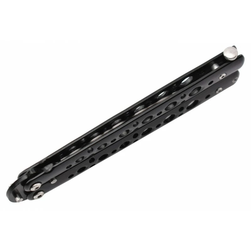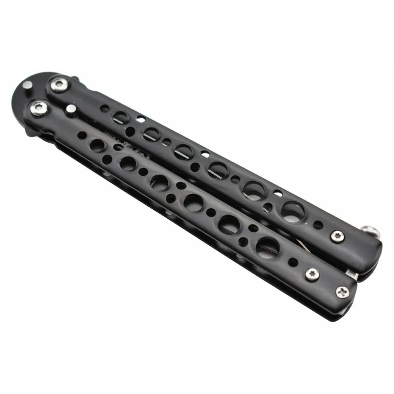 Pour dĂ©buter l’aventure « balisong » de la meilleure des façons, rien de mieux que le Max Knives P53B, un couteau papillon peu onĂ©reux qui combine style et performances. Le manche est ici construit en acier inoxydable noir, et surtout largement ajourĂ© par des formes rondes de tailles diverses. C’est ce qui est Ă l’origine de l’allure raffinĂ©e du P53B Max Knives ! De longueur 117mm, la poignĂ©e est facilement transportable en toutes circonstances.