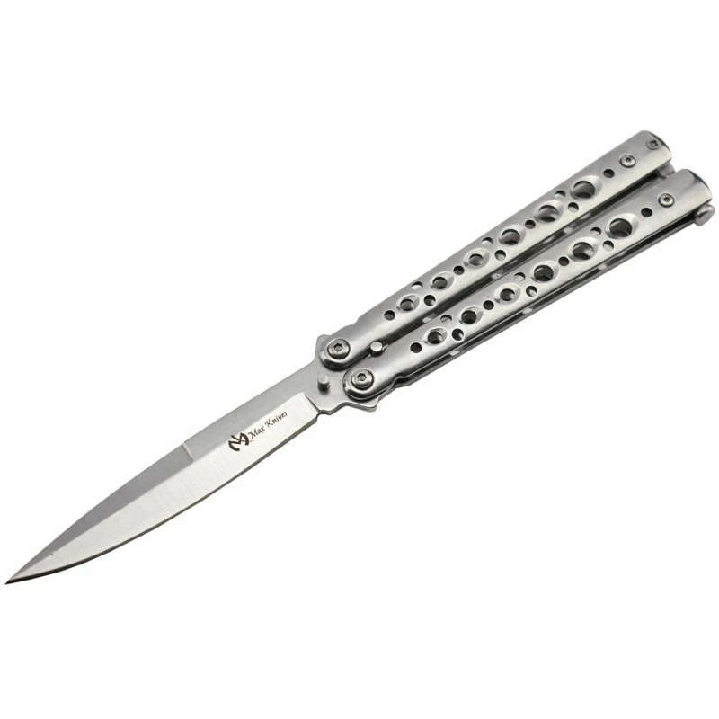 Le Max Knives P53S est un couteau papillon à la fois simple, élégant et fonctionnel, tout en étant proposé à la vente à un tarif des plus accessibles. En le regardant une première fois, on remarque immédiatement la beauté de son manche en acier inoxydable gris « silver« , enrichi de trous ronds de différentes tailles pour un esthétique à couper le souffle. Il vous donnera également satisfaction sur le plan du tranchant grâce à sa lame lisse de 98mm de longueur en acier inoxydable 3Cr13 : elle est de profil spear point pour un look plus agressif. La longueur de la lame est de 98mm tandis que la poignée elle mesure 117mm, autant dire que vous n’aurez aucune difficulté à emporter le Max Knives P53S où bon vous semble. Ce même modèle existe également en version noire.