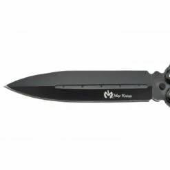 Ce couteau papillon Third référence 911615 est muni d’une apparence très sombre. En effet, il possède une lame noire conçue en acier inoxydable où figure le logo THIRD marqué en blanc afin de parfaitement ressortir. À noter que le manche de longueur 13cm est lui aussi fabriqué en acier et décoré de couleurs sombres : il est noir et violet. Très esthétique, le manche est aussi très maniable et transportable, un couteau balisong signé Third idéal pour apprendre à utiliser un couteau papillon.