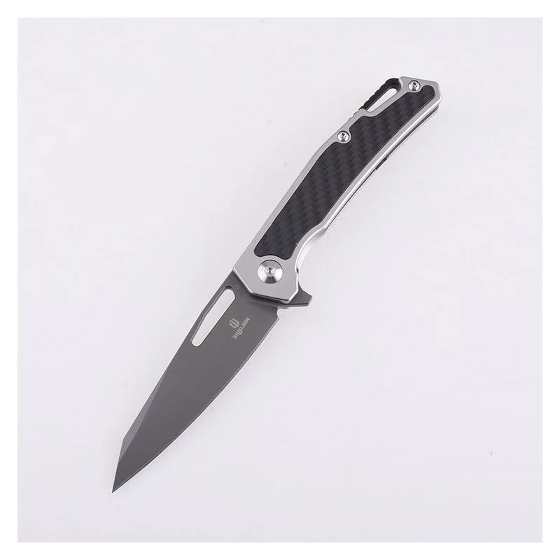 Son manche en carbone 3Cr14 est soigneusement réalisé et offre un style dynamique au couteau. Un système de blocage Frame lock garantit un usage en toute sécurité.