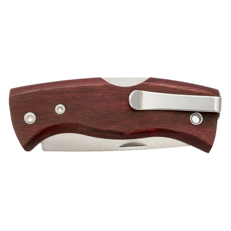Le couteau de poche Helle Raud M possède un manche en bois de bouleau, ce dernier a été teinté, lui conférant une belle et somptueuse couleur rouge que vous apprécierez à coup sûr. Mesurant environ 95mm de longueur, la poignée est équipée d’un clip de poche ainsi qu’un trou pour lanière : avec tout ça, inutile de mentionner que le Raud M pourra être emporté d’un bout à l’autre sans la moindre difficulté ! Existe aussi en format taille S, plus petit, et donc encore plus transportable !