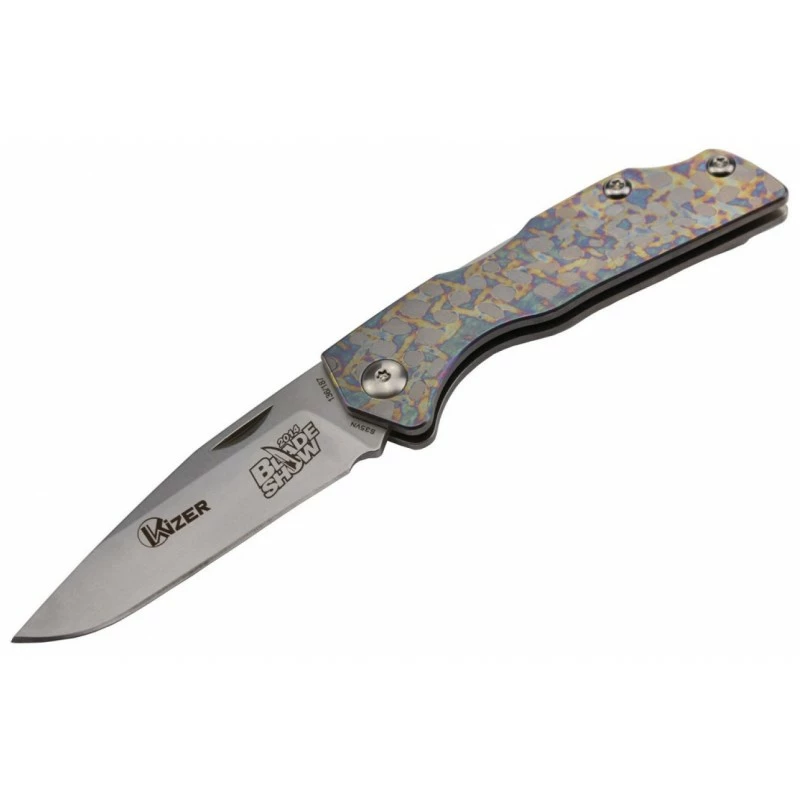 Issu de la marque Kizer, ce couteau de poche pliant vient commémorer le Blade Show de l’année 2014. De forme drop point, sa lame de 74mm en S35VN est d’ailleurs marquée du logo Blade Show 2014 ainsi que par celui propre à Kizer. D’une épaisseur de 2,5mm : la lame s’ouvre plus facilement grâce à l’onglet. Gravure possible en supplément au dos.