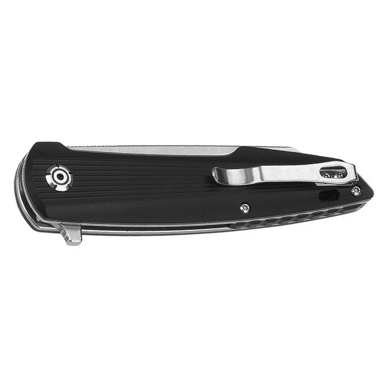 Le Phoenix QSP est un couteau de poche qui mesure 21.9cm de long en position ouverte pour un poids avoisinant les 150 grammes. Il est muni d’une lame tanto inversée à la finition satinée, conçue en D2, un acier à outils autant robuste que facile à aiguiser. Couteau bénéficiant d’une ouverture Flipper, le déploiement de la lame se fait d’une main, aussi bien de la droite que de la gauche. La fluidité et la délicatesse de l’ouverture sont assurées par le support de roulement à billes intégré au pivot. Lors de l’utilisation, le mécanisme Liner lock assure le blocage de la lame. Le manche ergonomique du QSP QS108C est de couleur noire. Confectionné en G10, il est solide et léger à la fois. Son design rainuré antidérapant permet une prise en main sûre et confortable. Equipé d’un clip réversible en métal, il offre un moyen de transport simple et un accès au couteau rapide. Comme la grande majorité des couteaux mis en vente sur notre site, le Phoenix est personnalisable. Vous pouvez en effet y ajouter une gravure sur le recto, le verso ou des deux côtés en cliquant sur le bouton « Ajouter une gravure » ci-dessous.