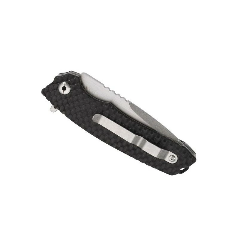 Ce couteau Puma-TEC rĂ©fĂ©rence 300912 est dotĂ© d’un sublime manche de 12cm de longueur en G10 noir usinĂ© en « nid d’abeille ». Il est très difficile de rĂ©sister Ă son charme, surtout que ce couteau d’exception est en plus livrĂ© dans un beau coffret. Tranchante, la lame de ce couteau Puma-TEC est conçue en acier inoxydable 440 finition « stonewashed » avec « flipper » Ă cran intĂ©rieur. Un couteau qui sera parfait pour offrir aux collectionneurs de jolis couteaux !