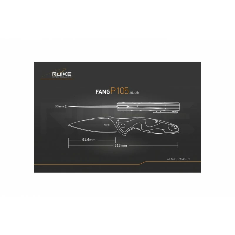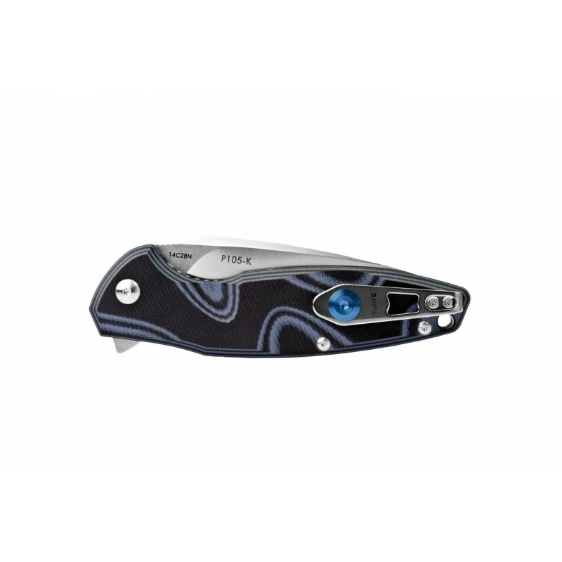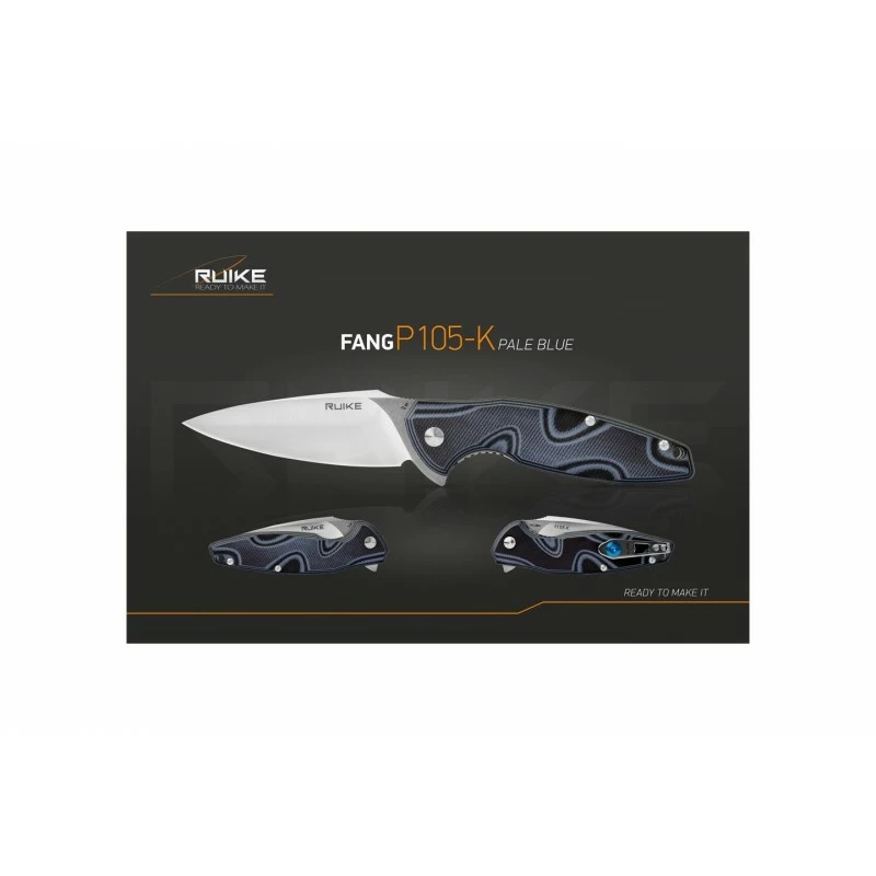 Le Ruike P105K Fang est un couteau pliant qui s’adresse Ă celles et ceux en quĂŞte d’originalitĂ©, de surprises. Il est vrai que son manche de 122mm de longueur, de forme ergonomique, bĂ©nĂ©ficie d’un design hors du commun. Il est dĂ©corĂ© par des nuances bleues pales, confĂ©rant un charme irrĂ©sistible, ainsi qu’une touche de modernitĂ©. En plus d’ĂŞtre stylĂ©, le manche assure aussi une facilitĂ© de port, si bien que le couteau de poche Ruike P105K Fang pourra ĂŞtre transportĂ© de façon très simple.
