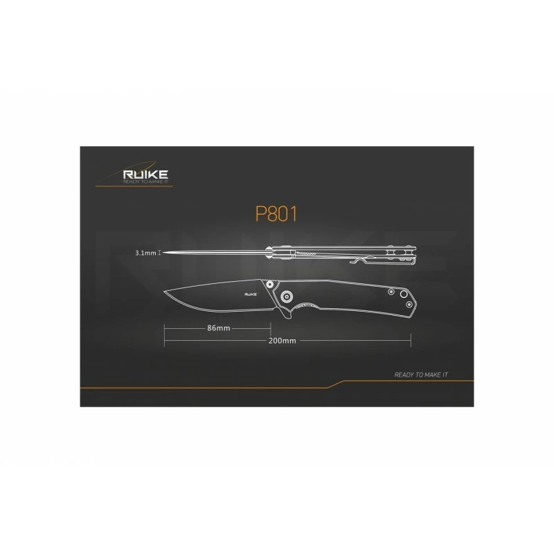 Le Ruike P801SF est un couteau EDC qui est fabriqué presque de façon intégrale en acier inoxydable, avec des nuances bleues pour la touche d’élégance, de style. Sa lame de 86mm est fabriquée en acier inoxydable Sandvik 14C28N (dureté 58-60HRC), avec ouverture par flipper et thumb stud bleu. De qualité, l’acier utilisé garantit un excellent tranchant, ainsi qu’une résistance à la corrosion optimale. Présence de l’inscription Ruike afin de faire plaisir aux fans, et possibilité de personnalisation via le bouton « Ajouter une gravure« .