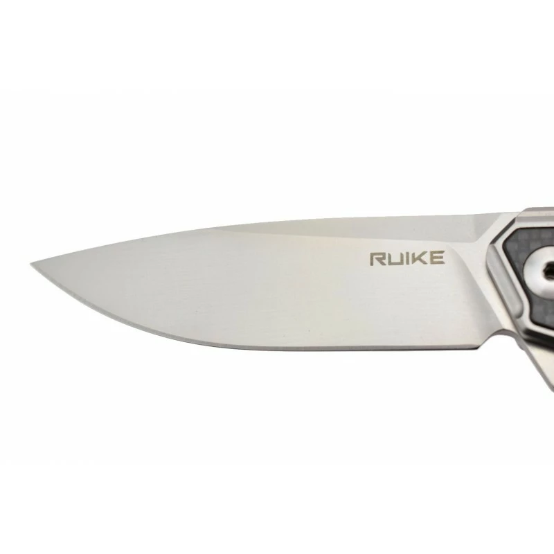Le Ruike P875-SZ est un couteau pliant à verrouillage frame lock, qui possède également une lame de type drop point, mate et lisse, et fabriquée en acier inoxydable Sandvik 14C28N. À titre informatif, la lame mesure 89mm de longueur pour une épaisseur de 3mm, elle est bien sûr décorée par l’inscription Ruike. Possibilité de personnalisation par gravure, sur les deux faces de la lame (option facultative en supplément).