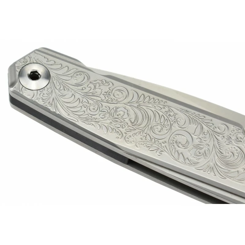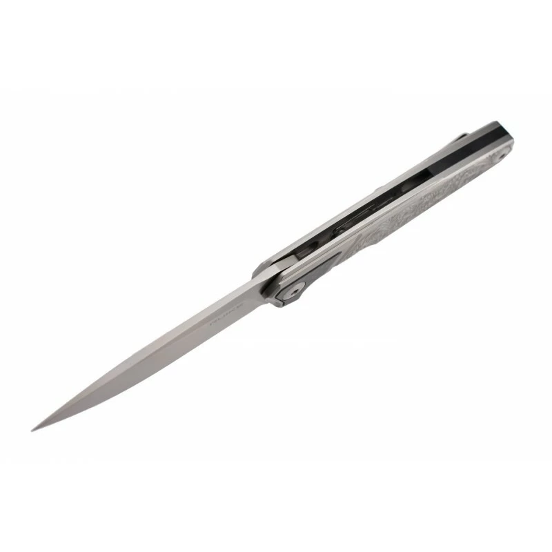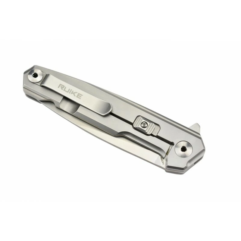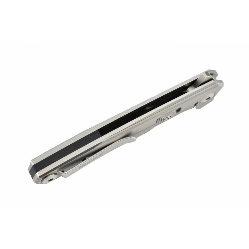 Le couteau Ruike P875-SZ va vous en mettre plein la vue, notamment par son manche en acier, avec insert en fibre de carbone, et décoré d’un magnifique motif en filigrane. Il faut l’avouer, la poignée est vraiment très belle, elle ne manquera pas d’attirer le regard, elle assure aussi une facilité de port quotidienne grâce au clip de poche ainsi que sa longueur d’à peine 20cm. On soulignera la présence d’un verrou sur le manche, afin d’éviter les ouvertures accidentelles, non désirées si vous préférez.