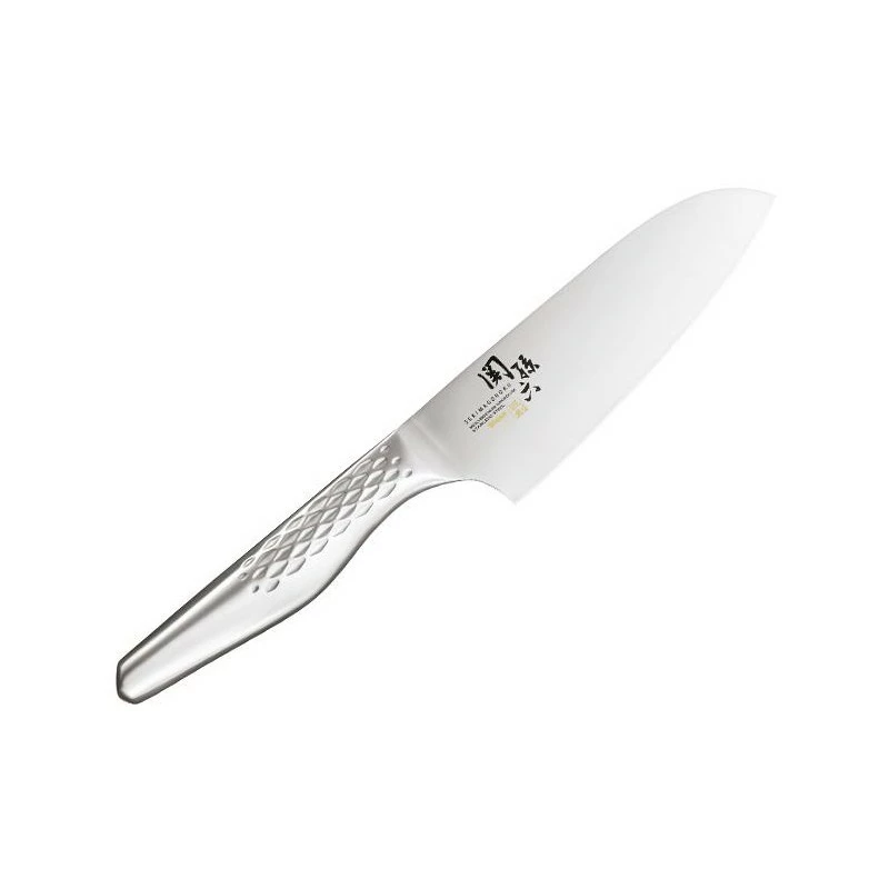 Forgé à partir d’acier inoxydable, ce couteau Santoku Kai Seki Magoroku Shoso est aussi élégant que performant. Sa particularité, c’est sa conception en structure intégrale, sans soudure entre la lame et la poignée offrant ainsi une robustesse à toute épreuve. La lame Santoku de 145mm de longueur, est conçue en acier 1K6 où la teneur en carbone est de 0,8%, le tranchant convexe et la finition satinée. C’est un couteau de cuisine traditionnel Japonais qui brille par sa polyvalence, avec une incroyable capacité à trancher les légumes, mais aussi les fruits, les viandes … Pour toujours plus d’élégance, de style, la lame à pointe convexe est marquée de symboles et inscriptions.