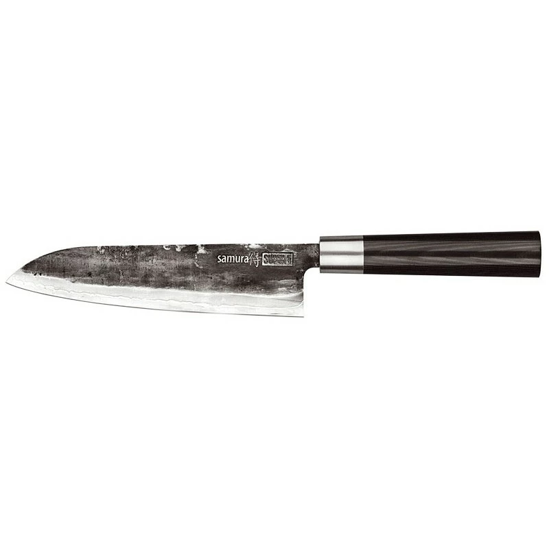 Dans la sĂ©rie Super 5 de chez Samura, voici le couteau Santoku. Avec son style sobre et chic, cet ustensile tranchant haut de gamme Ă©claboussera votre cuisine par sa beautĂ© mais aussi par sa facultĂ© Ă faciliter la prĂ©paration de vos mets ! Vous ne pourrez qu’apprĂ©cier l’incroyable polyvalence de sa lame de 18.2 cm de long qui est en mesure de rĂ©aliser toutes les dĂ©coupes dont vous aurez besoin. Celle-ci est fabriquĂ©e en VG-10, acier riche en carbone qui offre une excellente rĂ©sistance Ă l’usure et Ă la rouille. Son manche de 14cm est en micarta. Sans compter son bel aspect, il garantit une prise en main agrĂ©able et aisĂ©e favorisant l’exĂ©cution de tâches de coupe prĂ©cises.