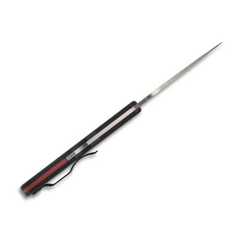 Cette version spéciale du Spyderco Endela 4 s’intitule « Thin Red Line » en raison de son entretoise rouge, contrastant à merveille avec la couleur noire du manche en FRN. Cette « ligne colorée » a une symbolique, celle de rendre hommage aux pompiers et combattants de feu qui servent avec honneur leur pays. Nous vous rappelons que le manche moulé par injection est texturé de sorte à ce que la poignée ne vous échappe pas entre les doigts. Le clip de transport au dos assure de l’avoir sous la main à chaque instant.