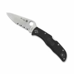 La lame du couteau Spyderco Endela 4 Thin Red Line, référence C243FPSBKRD, comporte l’inscription « Save and Serve » gravée au laser, juste à côté du motif Spyderco qui lui même se situe à proximité de l’ajour ou trou. Elle mesure 87mm de longueur et s’avère être fabriquée en VG-10, elle possède un bord lisse ainsi que cranté pour plus de polyvalence : c’est ce qu’on appelle une lame mixte ! Possibilité de gravure en supplément (voir bouton ajouter une gravure).