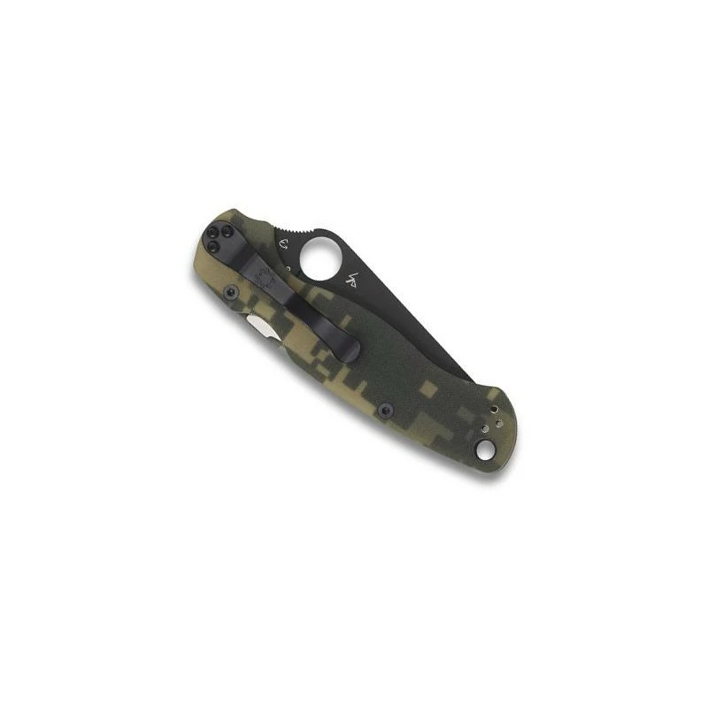 Le Spyderco Para Military 2 référence C81GPCMOBK2 est un couteau pliant fabriqué à Golden, dans le Colorado, aux Etats-Unis. Il possède un manche de longueur 12cm en G10 camouflé, il a été rétréci au bout pour une meilleure ergonomie. Doté d’une allure très militaire, le manche est ambidextre si bien qu’il peut être utilisé avec la même facilité de la main gauche ou de la main droite. On notera également la présence d’un clip pour faciliter davantage les déplacements avec le couteau.