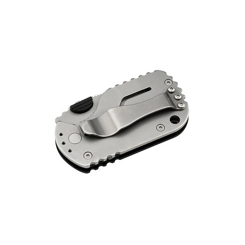 Côté manche, il est conçu en zytel texturé noir et se révèle être ergonomique par tous les temps. Un protège-main largement prononcé évite que la lame ne glisse, évitant ainsi les risques d’accidents. De petite taille, la poignée est enrichie d’un trou de lanière et d’un clip convertible, autant dire que la facilité de transport est réelle.