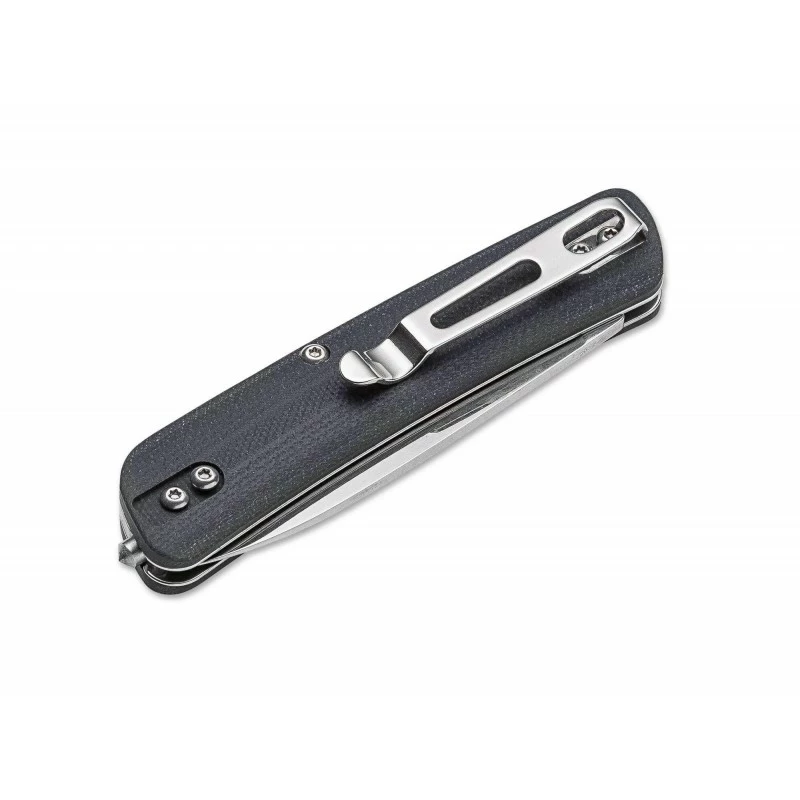 Le Tech-tool City 1 est une réalisation moderne de la célèbre marque Böker Plus. Le couteau a des revêtements en acier inoxydable intégrés dans les plaquettes profilées en G10 noir, matériau à l’origine d’une forte robustesse et d’un grand confort d’utilisation. Le design du manche de 96mm est propre, sans fioriture, et accorde une aisance de transport certaine grâce au clip au dos.