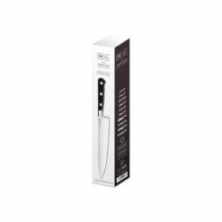 Idéal pour trancher nettement le jambon, la viande ou encore le rôti, le couteau tranchelard Due Cigni est conçu et fabriqué à Maniago en Italie, une coutellerie existante depuis 1896, soit plus de 100 ans d’expérience au compteur ! Relativement fine, la lame pleine soie, en acier inoxydable X50CrMoV15, mesure précisément 195mm de longueur. Marquée par le logo Due Cigni, elle peut également être personnalisée par une inscription au choix grâce au procédé gravure.