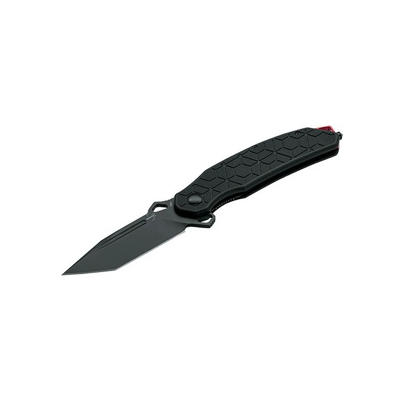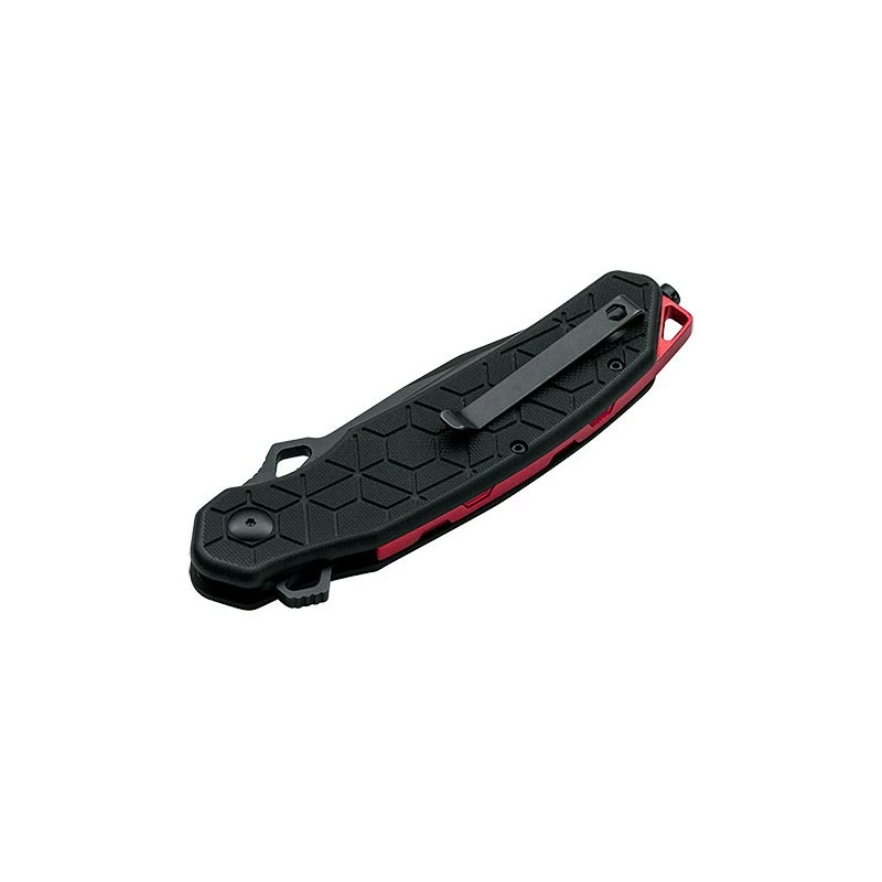 Le Böker Plus Yokai est un couteau tactique conçu par Alessandra De Santis alias Hydra Design, une entreprise familiale du Nord de l’Italie spécialisée dans les accessoires et armes tactiques. Le Yokai est un couteau au design exceptionnel, il possède une lame tanto fabriquée en D2 ce qui apporte une pointe d’agressivité. De couleur noire, la lame de 95mm peut être ouverte d’une seule main via le flipper et sécurisée en utilisation et durant le transport grâce au liner lock. Le manche est lui fait de G10 noir avec motifs nid d’abeille, il tient bien dans la main même en cas de mauvais temps, une ergonomie de haute voltige. Une entretoise en aluminium rouge apporte une note colorée, le détail visuel qui fait la différence ! Une apparence originale et des performances maximales, telle est la devise du Böker Plus Yokai.