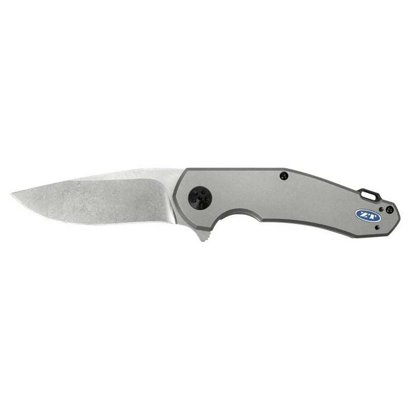 Ce couteau Zero Tolerance 0220 est issu de la collaboration entre l’Ă©quipe ZT et Jens Anso, un outilleur Danois, d’oĂą le nom de ce couteau pliant. Il possède une lame Ă pointe recourbĂ©e en acier inoxydable S35VN, un matĂ©riau de très haute qualitĂ© très utilisĂ© par le fabricant Zero Tolerance. Ă€ noter que la lame de longueur 89mm est munie d’une finition stonewashed pour le cĂ´te design. Les poignĂ©es du couteau ZT 0220 Anso sont fabriquĂ©es en titane gris. L’avantage de ce modèle, c’est incontestablement son système d’ouverture rapide (roulement Ă billes KVT) qui permet une utilisation simple et efficace : il suffit de tirer sur la nageoire. Pour que l’apparence du couteau Zero Tolerance 0220 soit toujours plus Ă©lĂ©gante, Jens a eu la bonne idĂ©e d’ajouter un pivot dĂ©coratif noir ainsi que le logo ZT en bleu et blanc au bout du manche en titane.