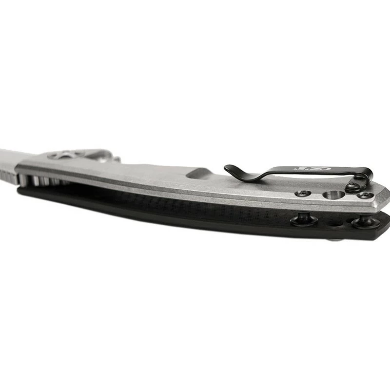 Ce couteau Zero Tolerance Sinkevich, rĂ©fĂ©rence 0452CF, est dotĂ© d’un joli manche de longueur 132mm conçu en carbone et titane. Il est sublimĂ© par un magnifique pivot Ă 5 branches, c’est à ça qu’on le reconnaĂ®t d’ailleurs. Ce couteau de poche pliant ZT est Ă la fois rĂ©sistant et ergonomique : il est agrĂ©able Ă tenir en main. Au niveau de la lame, le couteau Zero Tolerance Sinkevich 0452CF est fabriquĂ© Ă partir d’acier S35VN avec finition stonewashed pour la touche d’esthĂ©tisme. Ă€ noter que l’acier S35VN est très utilisĂ© par le fabricant Zero Tolerance. Le système d’ouverture est redoutable : c’est un système de roulement Ă billes KVT. Ce modèle avec clip rĂ©versible est idĂ©al pour les aventuriers qui n’ont pas peur de prendre des risques !