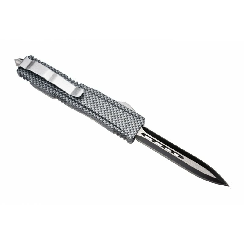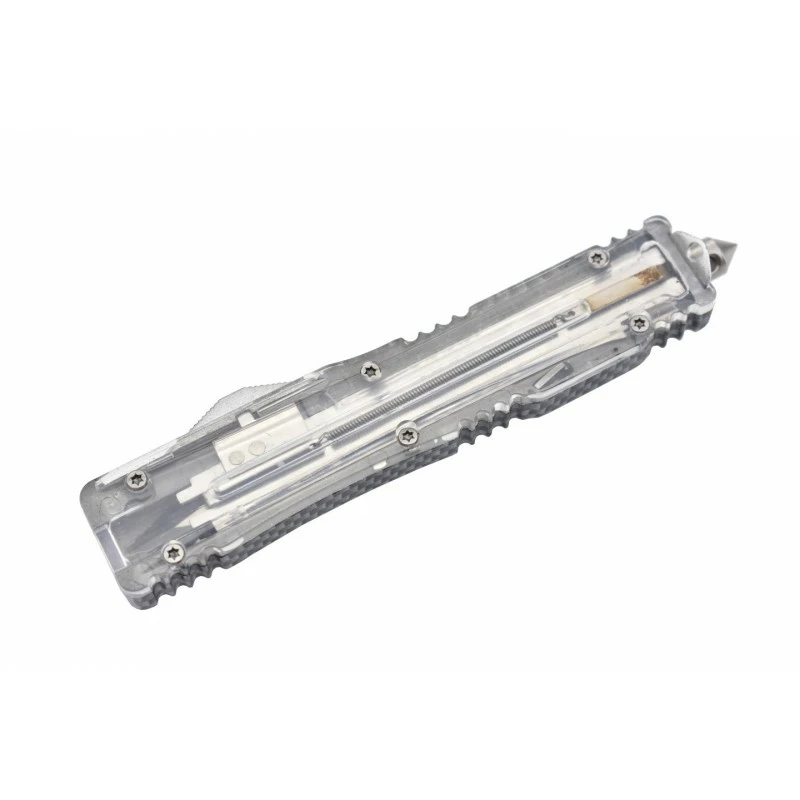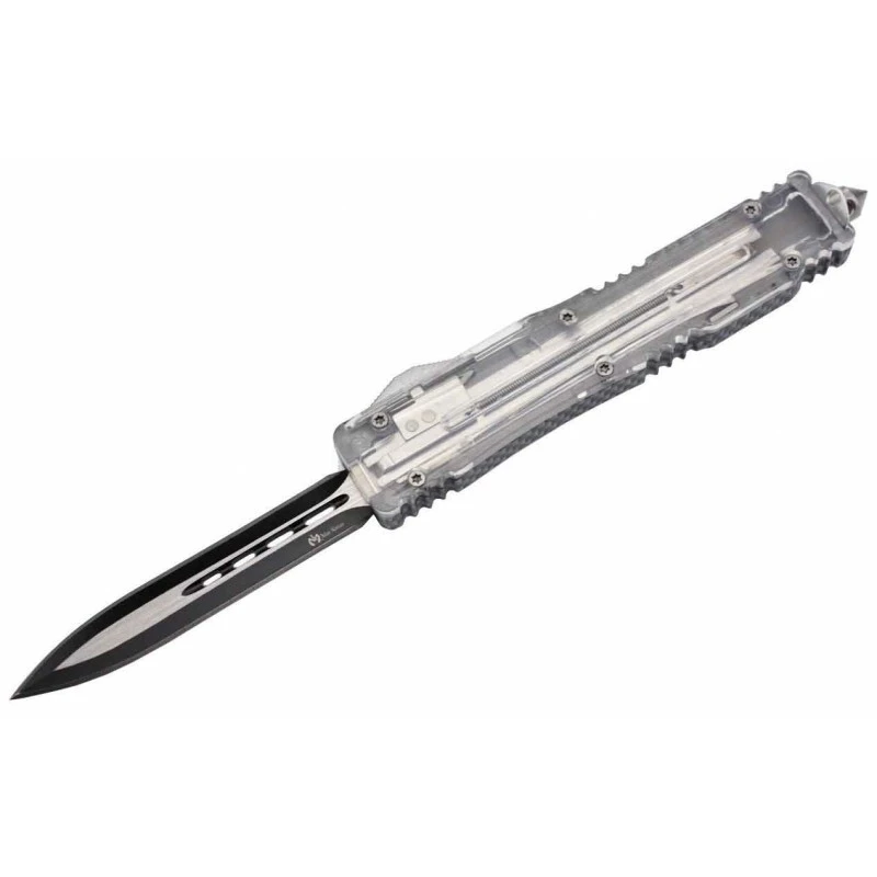 Pour les situations d’urgence oĂą chaque seconde est comptĂ©e, le Max Knives MKO23DEC sera votre plus fidèle alliĂ©. C’est un couteau automatique OTF, Ă double action, plein de surprises, ou d’originalitĂ© si vous prĂ©fĂ©rez. En effet, son manche fabriquĂ© en aluminium et PP s’avère ĂŞtre transparent, si bien qu’il est possible pour l’utilisateur d’entrevoir le mĂ©canisme de dĂ©clenchement de la lame. Pour faire sortir ou « éjecter » la lame, il faudra simplement faire coulisser le bouton glissière situĂ© sur le cĂ´tĂ©. Avec clip ceinture pour la facilitĂ© de port, et brise vitre en bout en cas d’urgence (idĂ©al pour le sauvetage, le secourisme).
