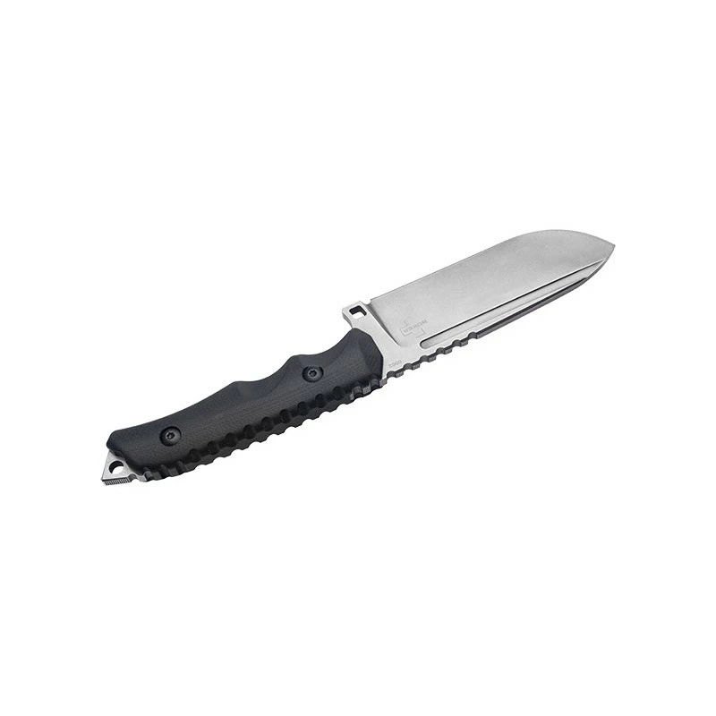 Conçu par Midgards Messer, le Böker Plus Hermod 2.0 est un couteau fixe convenant aussi bien pour la survie que le sauvetage ou encore secourisme. De construction pleine soie, sa lame est fabriquée en D2, un acier de haute qualité, sans oublier la finition délavée stonewashed pour la parfaire. Le manche profilé est conçu en G10 noir de forme ergonomique pour le confort de prise en main par tous les temps (froid et humide).