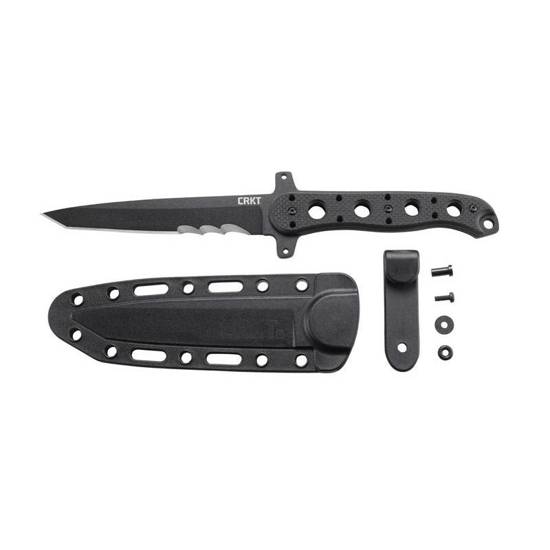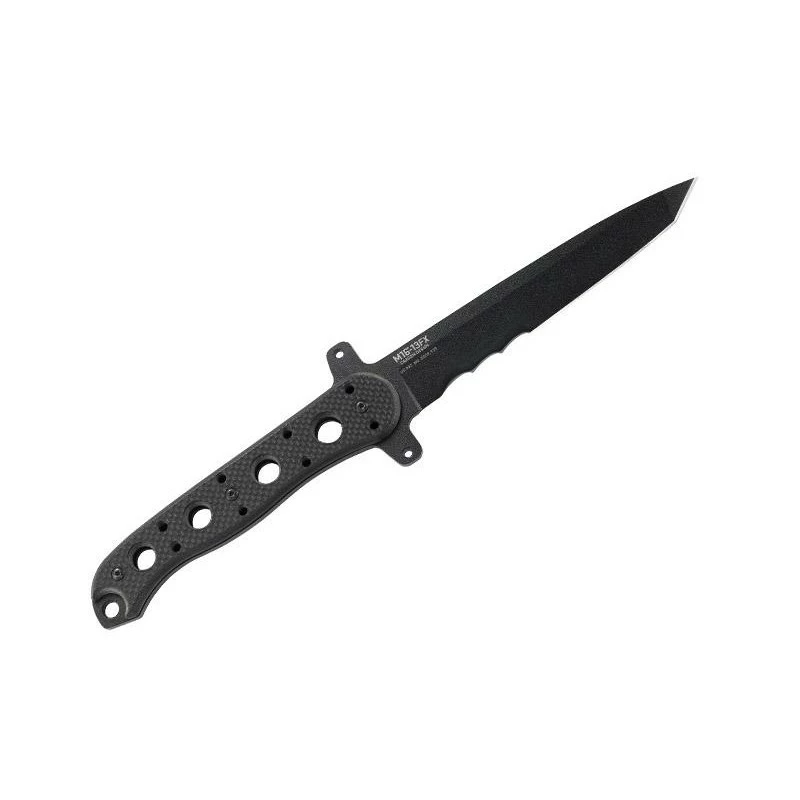 Le CRKT M16-13FX est le premier couteau fixe de la célèbre série M16 du regretté Kit Carson. C’est un poignard qui intègre une lame tanto, semi-dentée, conçue en acier carbone SK5 avec finition poudre noire pour une excellente durabilité. Les dentures seront parfaites pour trancher les cordes et cordons. Le revêtement noir assure une parfaite résistance face à la corrosion. La lame fixe est décorée par l’inscription CRKT en référence à la marque Columbia River Knife & Tool, possibilité de gravure en supplément.