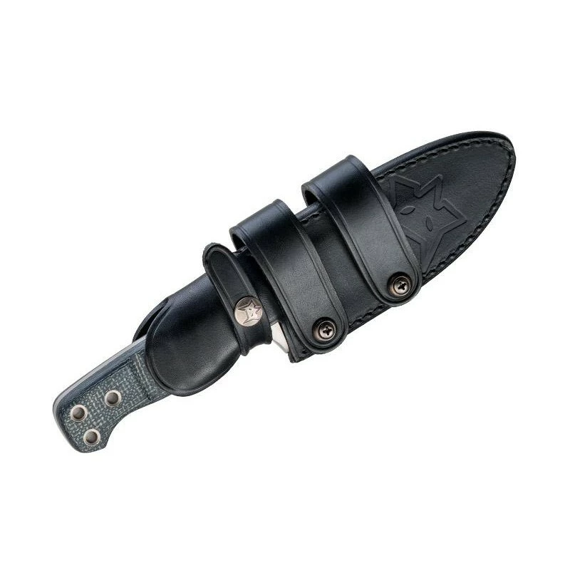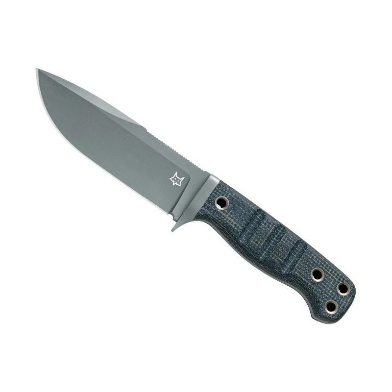 Le Fox Production MR103 est un poignard Ă l’allure sobre et distinguĂ©e : nul doute qu’il plaira au plus grand nombre. Son manche en micarta et toile de jute bleu ne vous laissera probablement pas indiffĂ©rent(e). Qui plus est, il tient bien dans la main, de quoi rendre les manipulations plus sĂ»res et agrĂ©ables. La protection du poignard est assurĂ© par un bel Ă©tui en cuir noir Ă fermeture bouton pression. Le bouton Ă©tant dĂ©corĂ© par l’emblème Fox Production, Ă savoir une tĂŞte de renard. Un motif que l’on retrouve aussi sur la lame de 115mm en acier Niolox, Ă la finition bead-blasted. Si la lame bĂ©nĂ©ficie d’un tranchant lisse, le dos lui est crantĂ©, tout cela confĂ©rant une plus grande polyvalence au quotidien. Le logo Fox Ă©tant de taille minime, la lame est assujettie Ă la personnalisation (gravure d’un texte en supplĂ©ment). Le poignard MR103 est une crĂ©ation du designer Reichart Markus pour Fox Production. Un incontournable pour vos activitĂ©s Outdoor, de plein air …