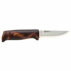 Le couteau fixe Helle Gro a été conçu pour vous faire « grandir en pleine nature« . Un poignard de taille moyenne idéal pour initier la jeune génération aux joies du plein air. Il possède un manche en bois de bouleau façonné et poncé par des artisans : il est également teinté de noir. La forme de ce dernier garantit une prise en main sûre à chaque instant.