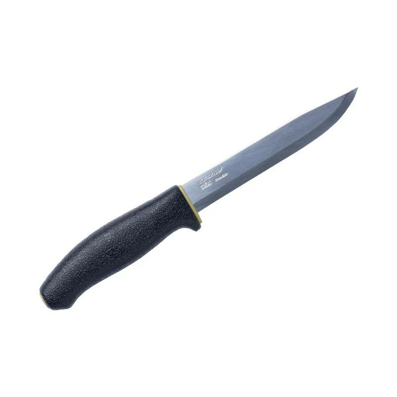 Le poignard Morakniv 748MG (rĂ©fĂ©rence 12475) est un couteau de survie conçu par des professionnels, pour des utilisateurs exigeants. Son principal atout, c’est sa grande lame de longueur 15cm en acier inoxydable utilisable en toute sĂ©curitĂ© grâce Ă un solide protège-doigts. Cela permet de travailler en toute sĂ©curitĂ© en limitant très fortement le risque de blessures. Cette mĂŞme lame est d’ailleurs personnalisable par gravure au niveau des deux faces (voir bouton ajouter une gravure). Pour une utilisation des plus confortables, ce poignard Mora 748MG intègre un manche noir antidĂ©rapant pour une excellente prise en main en toutes circonstances. IdĂ©al pour la chasse, la survie ou encore le bushcraft, ce couteau Mora est vendu avec son Ă©tui rigide coloris vert kaki. De quoi toujours avoir son poignard Ă disposition en cas de besoin lors des activitĂ©s de plein air !