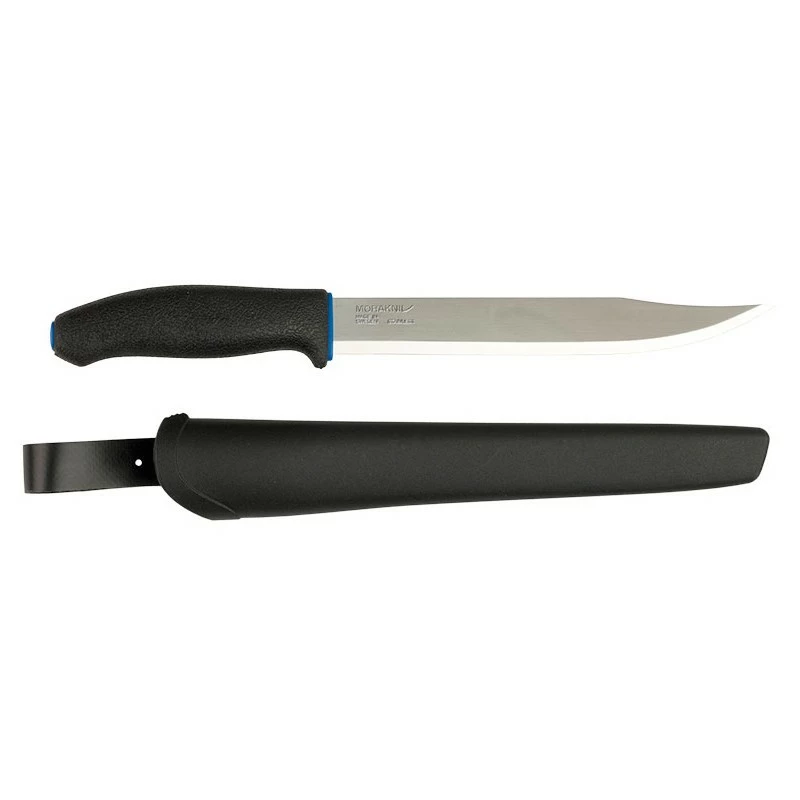 Le Morakniv 749 est un poignard très polyvalent, qui trouve une utilité en bons nombres de situations. Sa particularité, c’est sa grande lame en acier inoxydable (profil clip point) mesurant pas moins de 205mm de longueur. Une longue lame à bout pointu qu’il est possible de personnaliser (voir bouton ajouter une gravure ci-dessous). Très tranchante, elle permet de trancher facilement avec un maximum de force et un minimum d’effort. Le poignard Mora 749, c’est aussi un manche noir texturé en caoutchouc pour une prise en main confortable et sûre (antidérapant). Cela évite également les risques de traumatismes suite à une répétition de mouvements. Un couteau fixe signé Morakniv qui convient notamment pour les travailleurs (construction). Livré avec étui noir en polymère pour les transports. Lame compatible avec une pierre à feu.