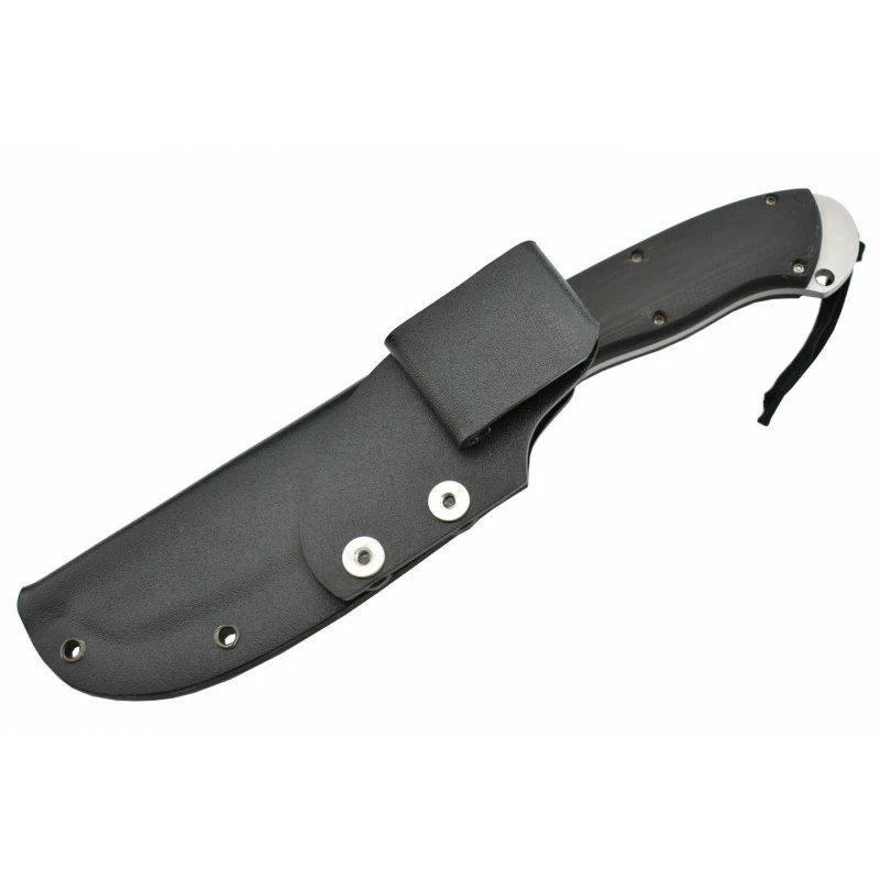 Un poignard digne de ce nom doit être agréable à prendre en main, assurant une prise ferme et sûre en toutes circonstances. C’est le cas du Mtech USA MT-024 qui est équipé d’un manche en plaquettes en G10 noir, avec intercalaires en acier et deux trous de lanière. Longueur totale : 235mm, couteau fixe livré avec son étui rigide en kydex afin de le transporter facilement.